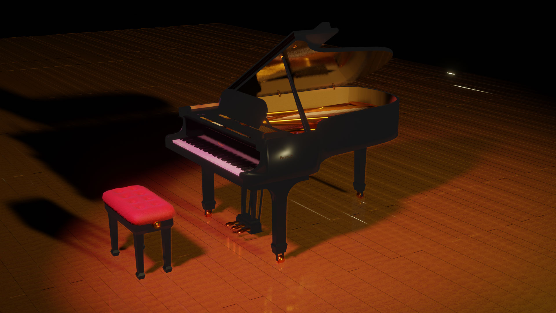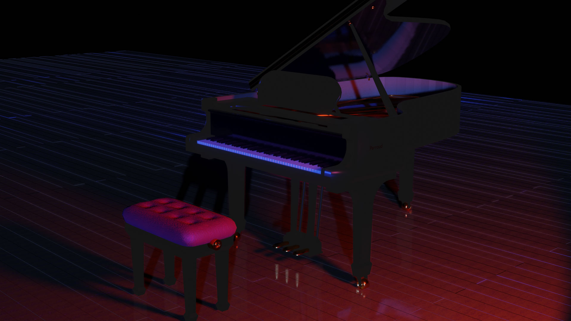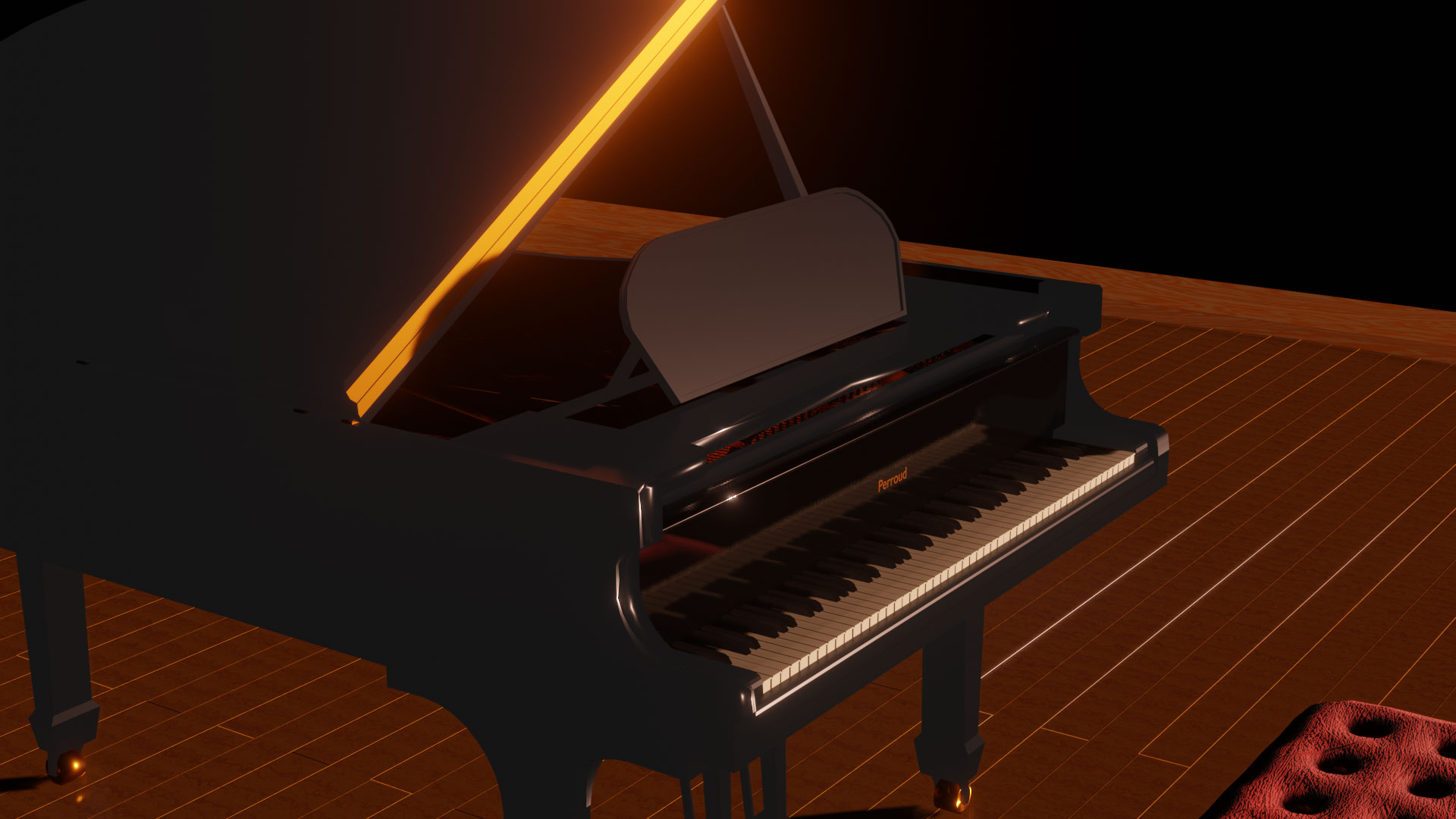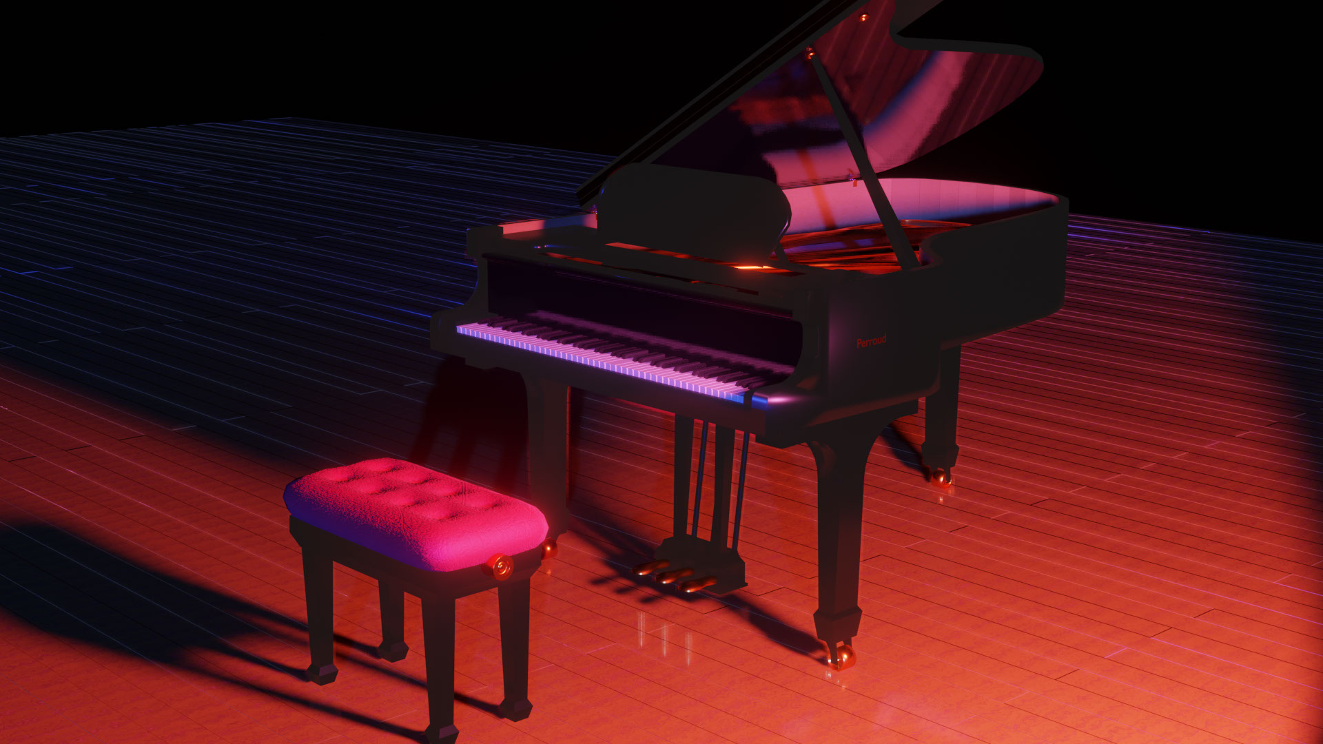 Travail de modélisation 3D d'un piano à queue dans Blender. J'ai ensuite travaillé les textures de mon model 3D. j'ai mis en place des lumières et des mouvements de caméra pour créer ce petit film. J'ai improvisé un petit morceau de piano que j'ai ajouté au montage final.
