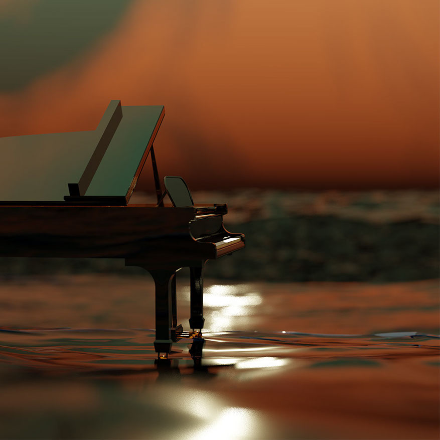 J'ai décidé de lui rendre hommage avec ce projet qui m'a fait travailler la mise en scène de mon piano en 3D. On voit un océan agité, contrasté par ce ciel très profond et intime qui reflète ce que je ressens da le musique de Beethoven.