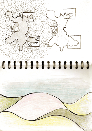 Notre projet consistait à créer une carte postale du lieu de nos vacances en dessinant les lettres avec des éléments typiques du lieu.