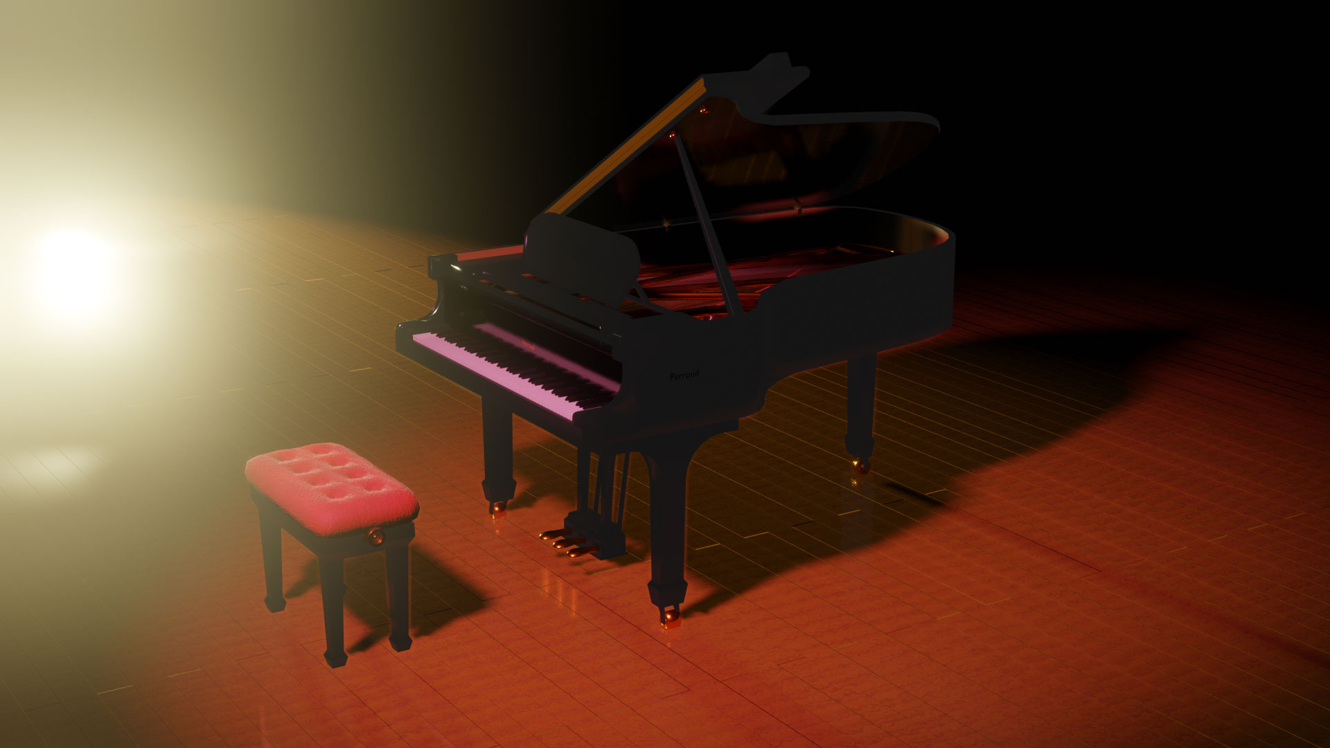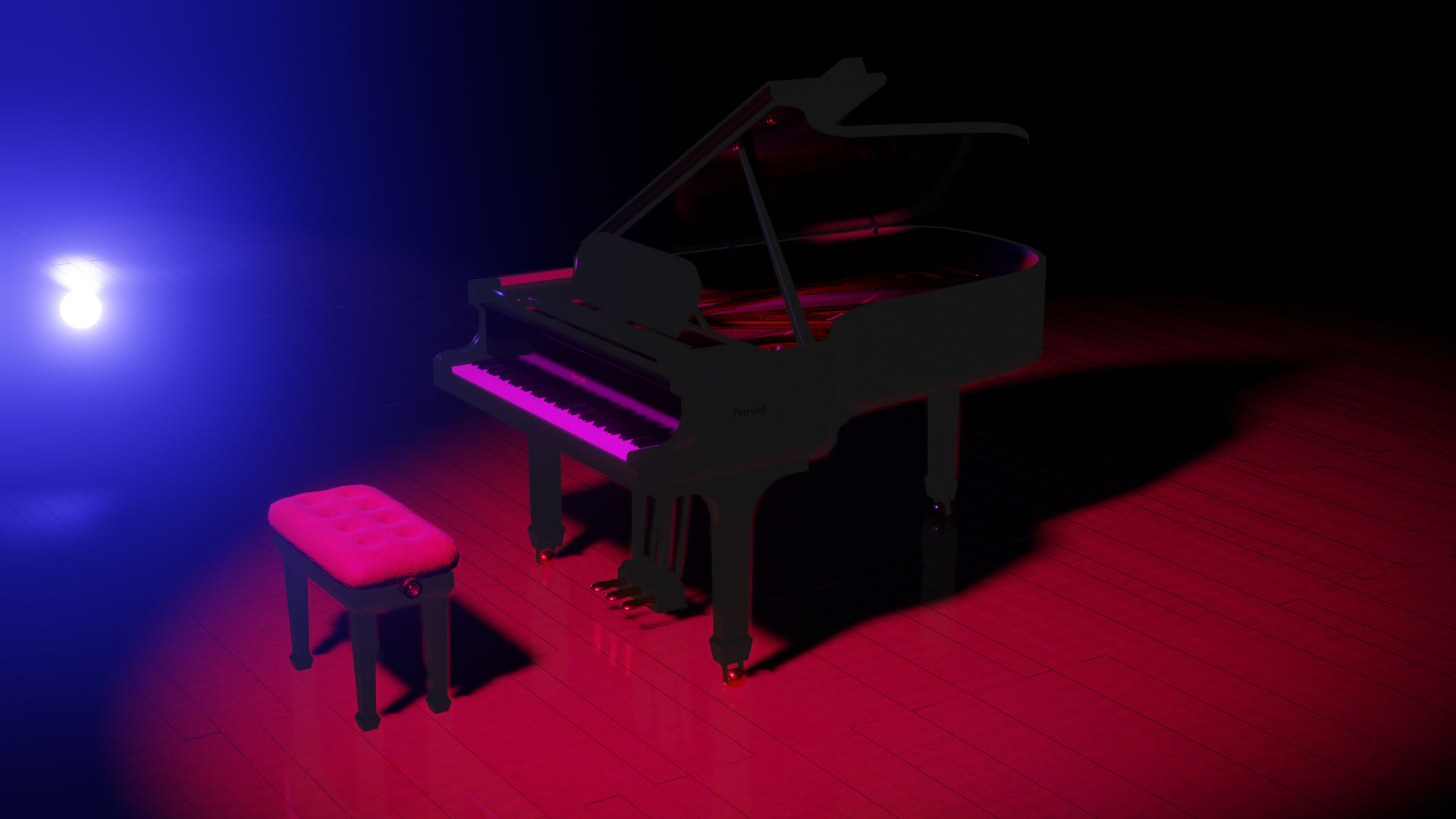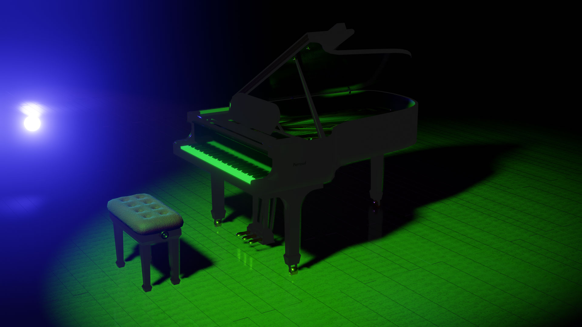 Travail de modélisation 3D d'un piano à queue dans Blender. J'ai ensuite travaillé les textures de mon model 3D. j'ai mis en place des lumières et des mouvements de caméra pour créer ce petit film. J'ai improvisé un petit morceau de piano que j'ai ajouté au montage final.