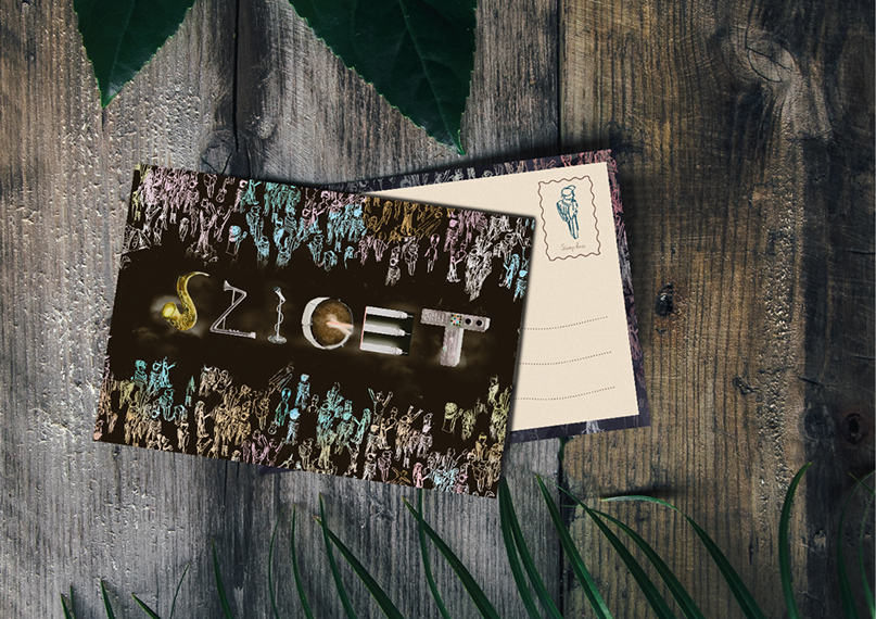Notre projet consistait à créer une carte postale du lieu de nos vacances en dessinant les lettres avec des éléments typiques du lieu.